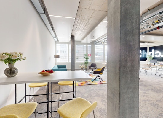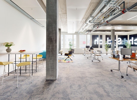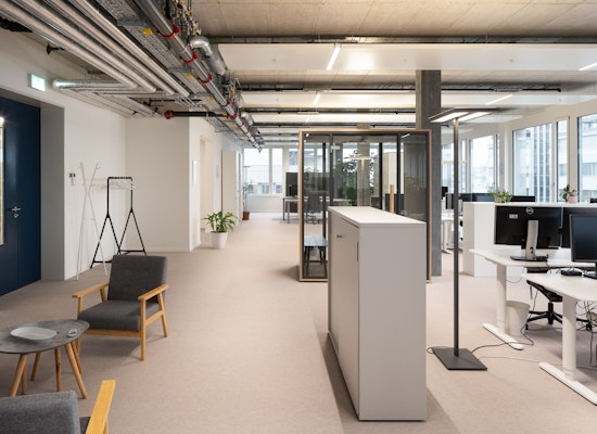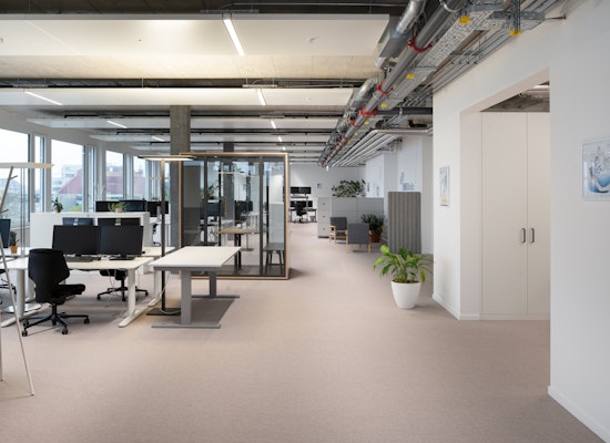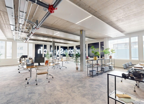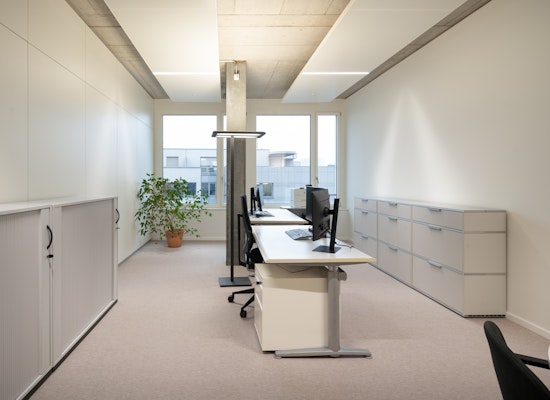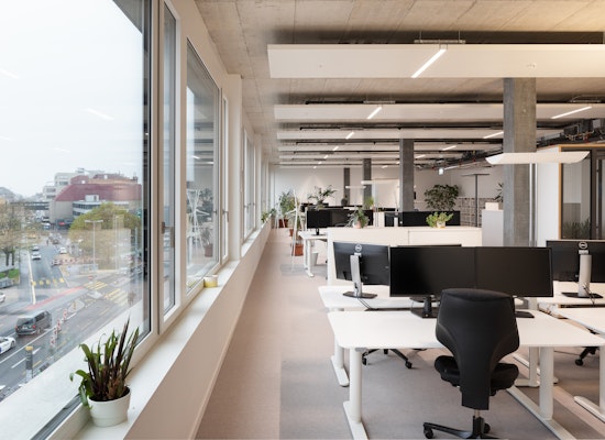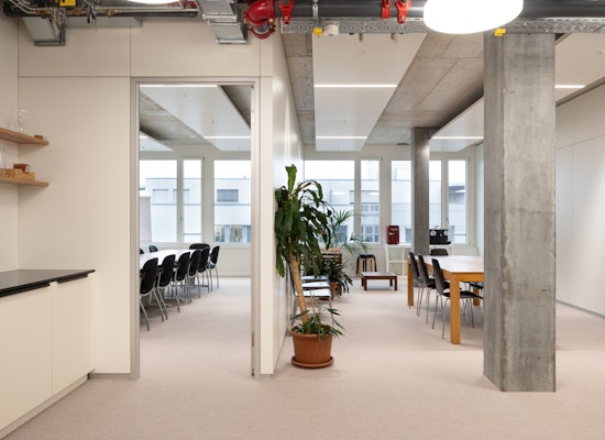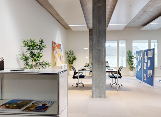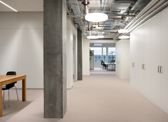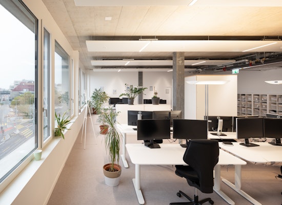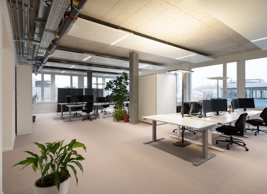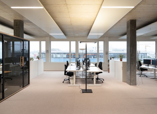In den Obergeschossen 1 bis 4 bieten grosszügig geschnittene Büroflächen mit Loft-Charakter beste Arbeitsbedingungen. Die Ausführung eröffnet vielfältige Gestaltungs- und Nutzungsmöglichkeiten, etwa als Coworking Spaces oder für Start-Ups. Die Ausstattung mit einer speziellen Klimadecke sorgt für ein besonders angenehmes Arbeitsambiente. Die WC-Anlagen befinden sich im zentralen Gangbereich. Die Möglichkeit, zusätzliche WCs direkt in den Büros zu installieren, ist gegeben. Neben der guten Anbindung an das ÖV-Netz, besteht für Mieter direkt im Haus die Nutzungsmöglichkeit von E-Mobility Autos.Wir dürfen in unserem Hause bereits begrüssen: